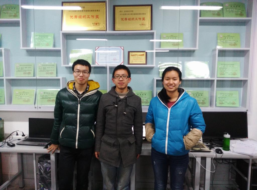 竞赛得到了beat365在线唯一官网领导的大力支持,教师张蒙专门负责竞赛指导,潘灵刚协同指导并做好后勤保障。竞赛恰逢春节临近,张晏鑫、谢良、刘倩三位学生克服了住宿、用餐、停暖各种困难,经过4天4夜的艰苦鏖战,顺利提交了题名为《enjoylife:A optimum way to bath》的参赛论文。