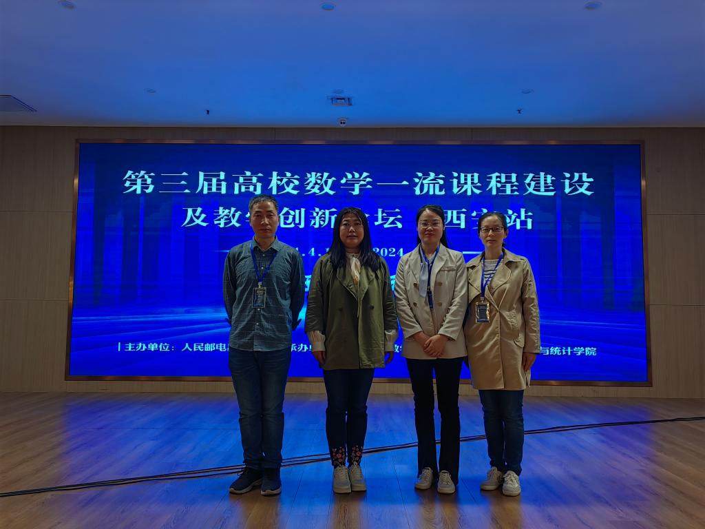 2024年4月13日,beat365在线唯一官网教师应邀参加了由人民邮电出版社主办、山东大学数学学院和陕西师范大学数学与统计学院共同承办的第三届高校数学一流课程建设及教学创新论坛。beat365在线唯一官网院长李小光、数学教研室主任周千以及校级一流课程负责人杨青、单文娟、王苗苗等教师参会。