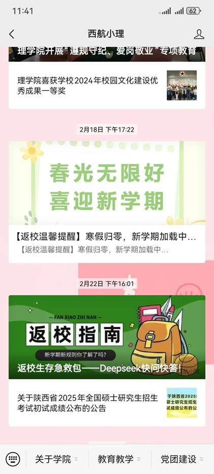2月18日起,及时发布返校指南和安全注意事项微信推送,助力学生安全返校
