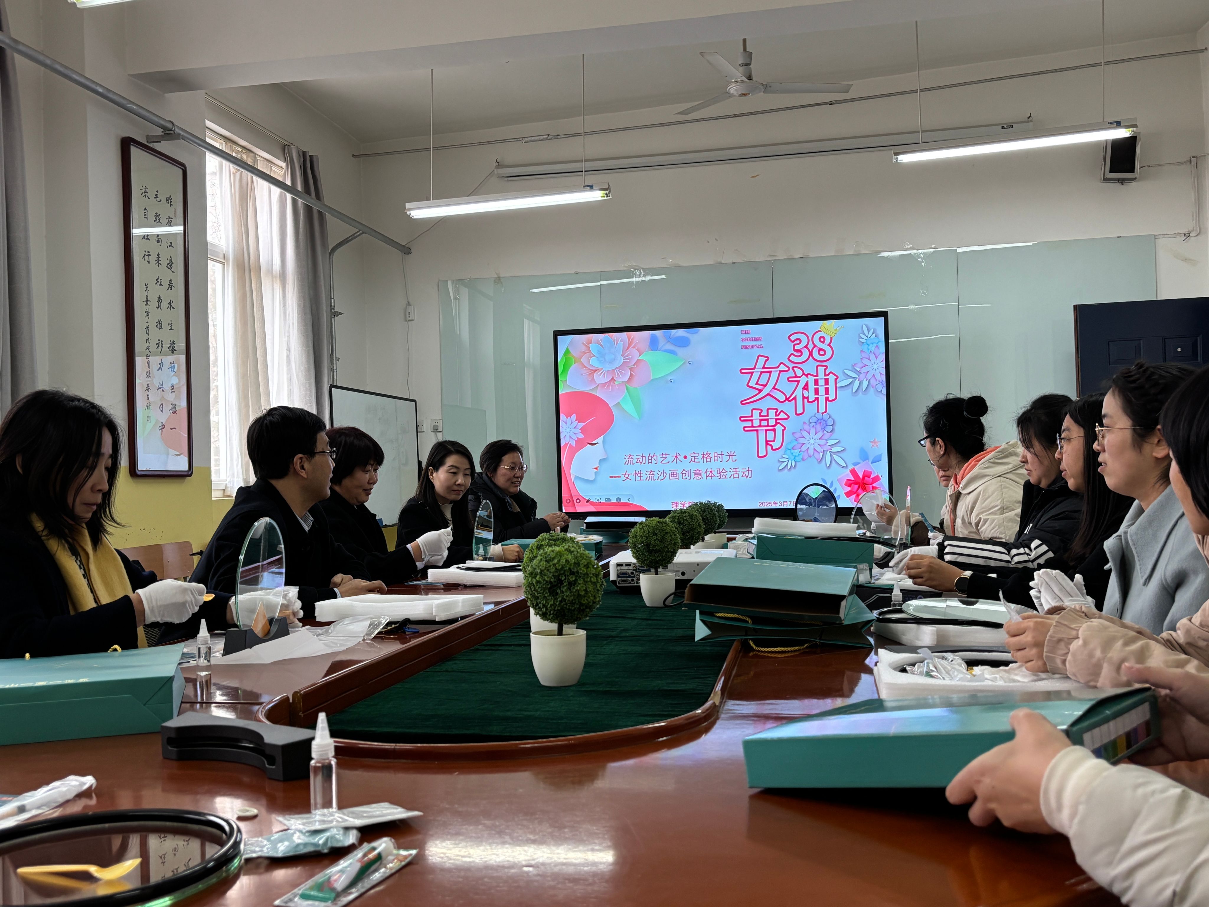 为庆祝“三八”国际妇女节,丰富女教师的精神文化生活,3月7日,beat365在线唯一官网分会组织女教师在南428开展了“流动的艺术·定格时光—女性教师流沙画创意体验”活动,吸引了众多女教职工积极参与,现场氛围温馨而欢乐。