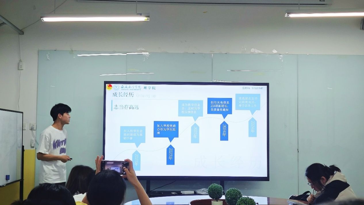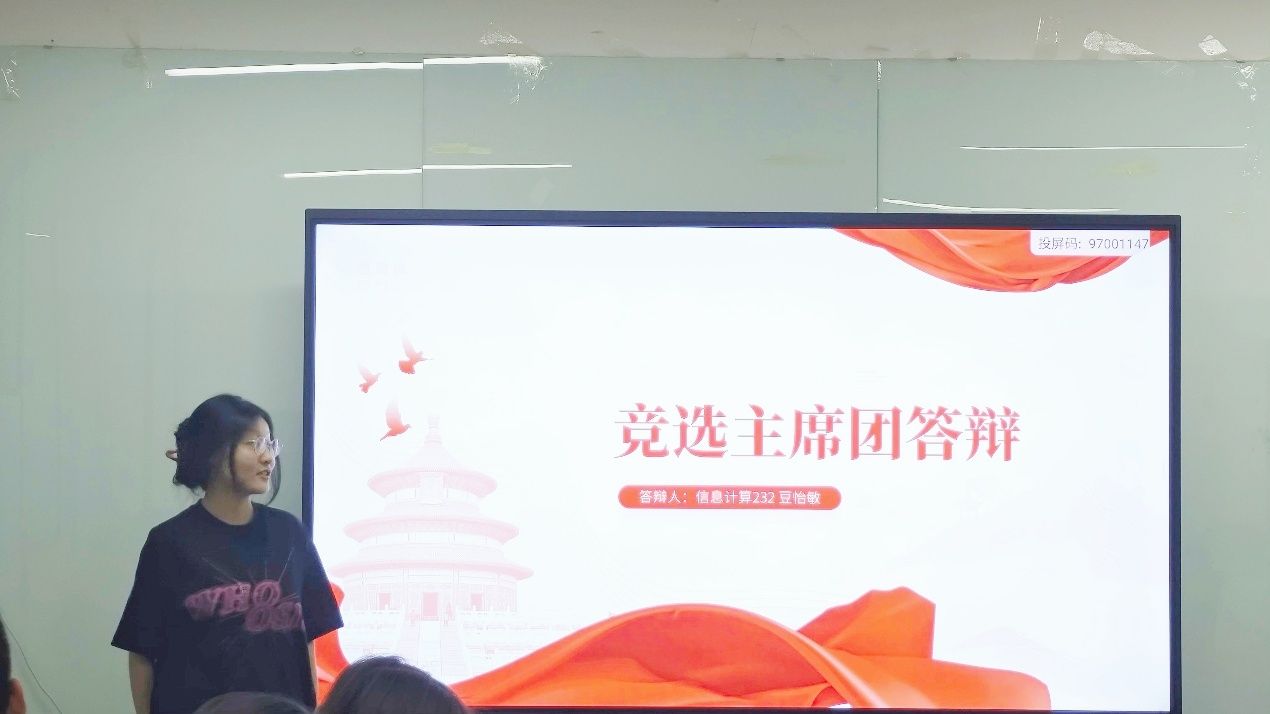 随后,团总支学生会干部答辩大会正式开始。参与答辩的候选人围绕个人基本情况、过往学生工作经历、对竞选岗位的认知以及未来工作计划等方面进行了详细阐述。有的候选人分享了自己在组织活动中积累的经验和遇到的挑战,有的则表达了对未来工作的创新想法和决心,充分展现出积极进取的精神风貌以及为同学们服务的热忱之心。曾妍针对候选人的陈述和实际工作可能遇到的问题进行提问,候选人冷静思考、认真作答,充分展示了他们的应变能力和对学生工作的深入理解。