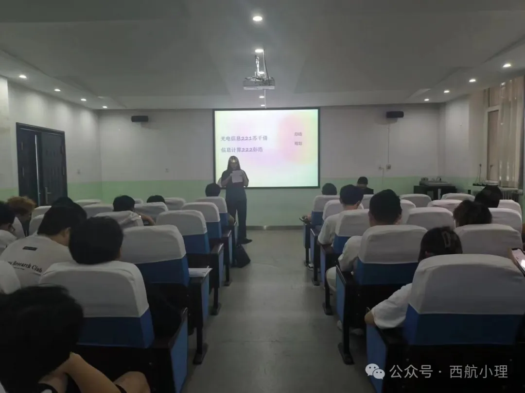 学生工作办公室主任李扬结合自身多年带班经验,引导大家发现自身的优势与短板,向优秀看齐,校准方向、找准定位。往届就业生刘亚军、考研学生代表张佳以及在校优秀学生代表吴禾坤、刘显婷、刘孔子等分别依次分享了就业、考研和学习方面的经验,同学们表示受益匪浅。