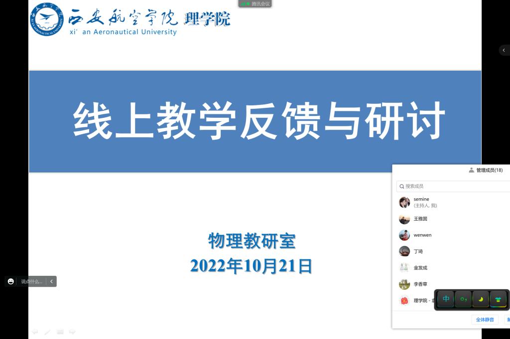 会上,每位老师就近期线上教学存在的学生网课积极性不高、自觉性差、存在挂机现象、学生知识点掌握不牢、自觉性较差、学校网络环境欠佳、网课卡顿等问题,进行轮流发言。老师分享了为保证学生学习效果,通过雨课堂、学习通等平台上传学习资料,利用学习通或雨课堂进行测验,检验学生知识点掌握情况,督促学生上传笔记,精简PPT,确保学生最大程度的消化课程内容,加强线上教学课堂管理,适当和学生互动,加入手写板,课后对课堂教学进行反思等教学手段,达到更好的教学效果。