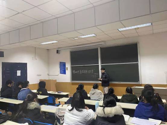 首先,各班团支书向同学们播放关于中国共产党党史的视频,同学们通过视频回顾了中国共产党从建立到发展的曲折过程,了解革命先烈的奉献精神、抗争精神以及强烈的爱国主义精神。随后,团支书向同学们分别介绍了新中国发展史、改革开放史、社会主义发展史,让同学们更深入、更具体地学习关于“四史”的知识。最后,团支书邀请大家谈谈自己的学习心得。