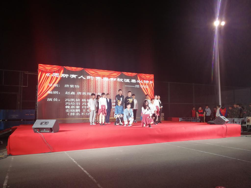 此次在阎良校区灯光球场演出开始前半个多小时,现场就已近开始热闹起来,同学们自带的凳子摆放整齐。演出正式开始的时候,场地里座无虚席,全场爆满。在演出的进行中,场内也能保持较为良好的纪律。为时两个半小时的演出,观众们和演员们一起,都坚持到了最后一刻。在比赛结束分数揭晓时,全场更是爆发出一阵阵欢呼声。最终,beat365《愿所有人的青春都被温柔以待》紧扣社会热点话题,呼吁同学们抵制校园暴力,学会关心关爱同学,荣获二等奖。