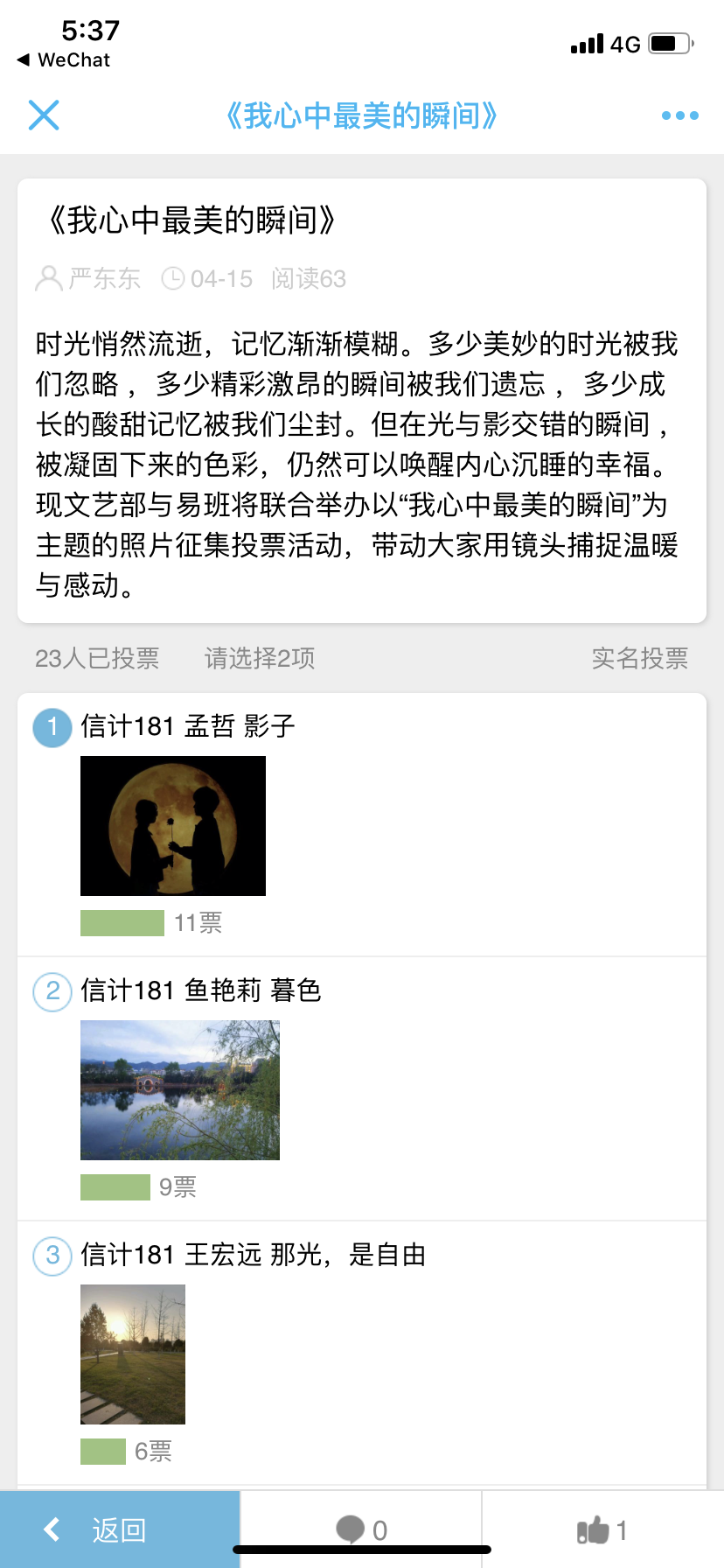 2019年4月15日,beat365在线唯一官网文艺部与易班工作站在易班线上联合开展了以“我心中最美的瞬间”为主题的活动。