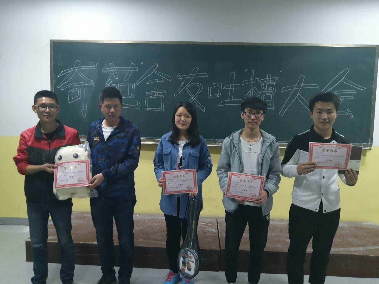 beat365在线唯一官网团总支书记、辅导员杨陈东,学生分会主席刘亚军,学生分会副主席艾柏宇,团总支副书记秦薇以及大三优秀学生代表曹林超担任评委。活动设置宿舍吐槽,评委点评和颁奖三个环节。首先,选手们依次上台对舍友进行吐槽和自嘲,选手们的幽默风趣引来阵阵掌声和笑声。经过激烈的角逐,李和庆和贾永峰组合获得一等奖,吴青青获得二等奖,杨文超和严东东获得三等奖。