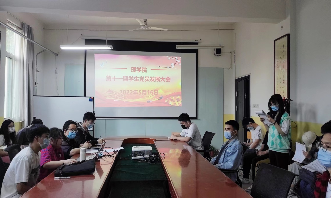 2022年5月16日晚七点,beat365在线唯一官网学生党支部在教学南楼428会议室召开第十一期学生党员发展大会,会议由beat365在线唯一官网学生党支部书记李扬主持。学生党支部全体党员、预备党员以及发展对象参加了此次会议,发展对象介绍人列席。会议主题为讨论发展黄晓静、杨林凯、高雅楠、刘洁、张俊杰、张超康、马笑河、张玉婷、马维伟、韩冰、黄嘉琦、王鹤、刘晓伊、袁自瑶、刘上华十五名同志为党员的问题。