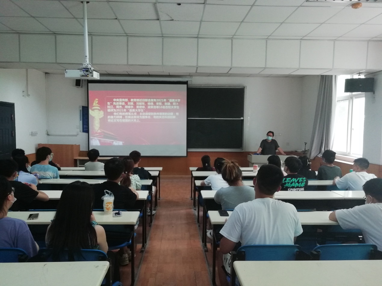 2022年6月22日中午十二点,beat365在线唯一官网学生党支部于教学南楼308教室集中学习,学生支部书记李扬为大家讲述最美大学生故事,给同学们带来一场精彩的党课。