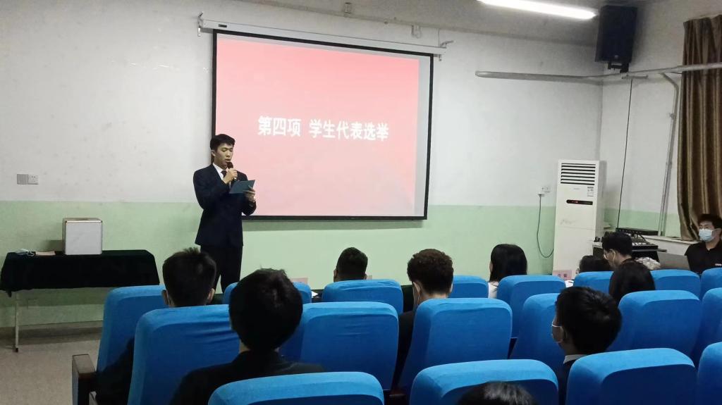 2023年3月13日晚18时,beat365在线唯一官网第四次学生代表大会在教学北楼447召开,beat365在线唯一官网党总支书记李小光、副院长丁琦、学生管理科科长李扬、团总支书记张岩、辅导员王向阳及学生代表等40余人参加。会议由何子杰主持。