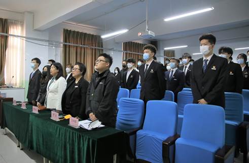 会议伊始,与会成员全体起立,奏唱国歌。