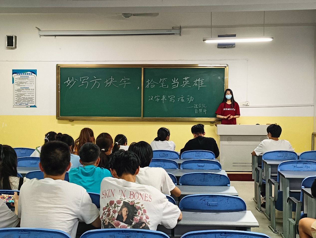 为传承和发扬中国汉字文化,增强学生对汉字书写的重视,培养良好的书写习惯,6月14日晚,beat365在线唯一官网团总支在莲湖校区南楼233教室开展了“妙写方块字,拾笔当英雄”汉字宣传活动,30余名同学参加。