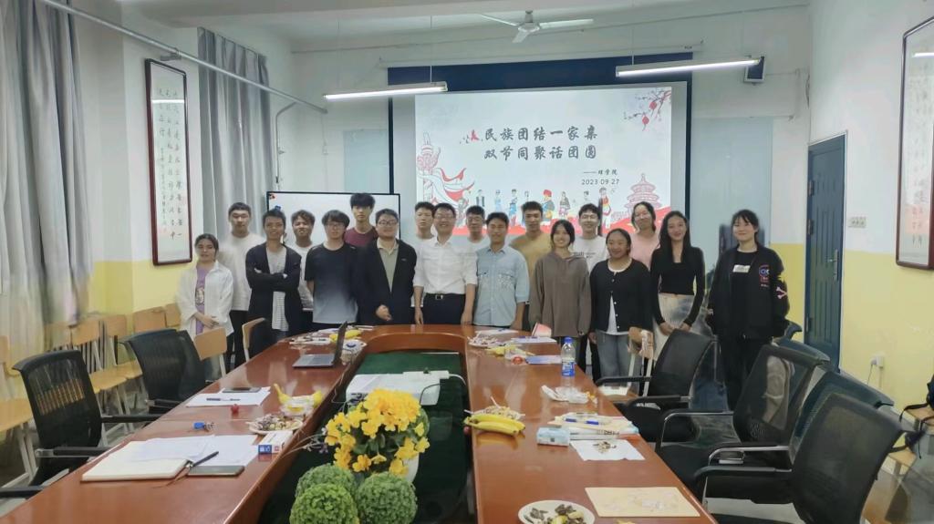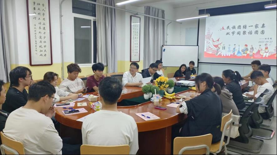 2023年秋季,beat365在线唯一官网迎来了藏族、回族、壮族、满族、瑶族、土家族、锡伯族、侗族和畲族等少数民族同学。为进一步促进不同民族学生的交往交流交融,铸牢中华民族共同体意识,在中秋节和国庆节来临之际,beat365在线唯一官网于9月27日晚召开举行了 “民族团结一家亲,双节同聚话团圆”少数民族学生座谈会,党总支书记胡红亮、一年级新生辅导员王向阳和少数民族学生参加了本次座谈会,座谈会由王向阳主持。