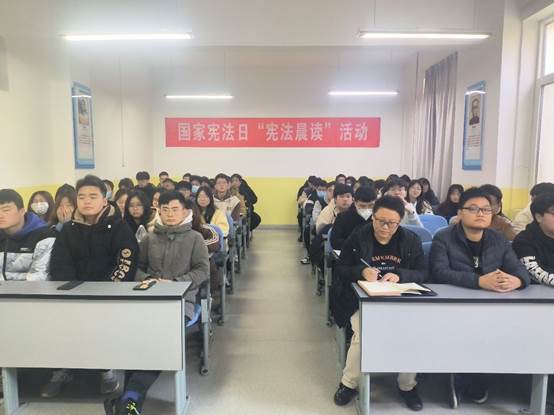 2023年12月4日是我国第十个国家宪法日,为了大力弘扬宪法精神,建设法制化社会,深入学习贯彻习近平法治思想,弘扬宪法精神,维护宪法权威,beat365在线唯一官网于12月4日开展了“宪法伴我们成长”——国家宪法日“宪法晨读”活动。beat365在线唯一官网学生工作办公室主任李扬、团总支书记王向阳、辅导员张岩和学生代表参加了此次活动。