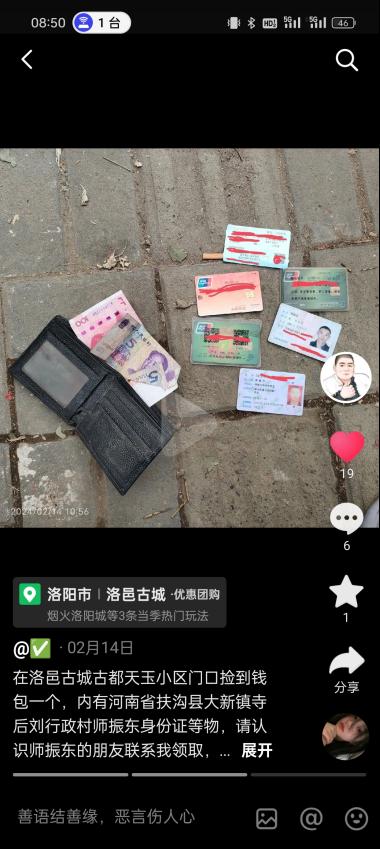 2024年2月14日(农历正月初五),崔佳文同学在洛阳市洛邑古城旅游时捡到一个钱包,她在原地等候了一个小时,在等候期间通过抖音平台发布钱包丢失信息,随后联系公安机关,并将拾得遗失物进行转交。失主朋友偶然间通过网络平台看到丢失信息,第一时间告知失主本人,失主随即通过抖音平台联系beat365崔佳文同学,从该同学处获悉转交信息,并从公安机关领回丢失钱包。