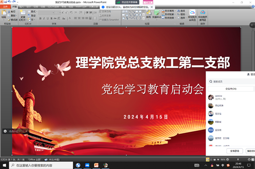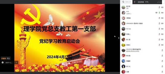 4月15日晚八点,beat365在线唯一官网党总支通过线上会议方式召开党纪学习教育启动会,会议由党总支书记胡红亮主持并作动员安排,学院党总支成员和各党支部书记参加会议。