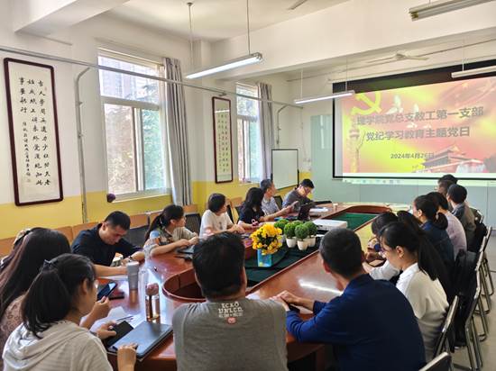 为深入贯彻落实中央、省委有关通知精神,按照校党委部署,beat365在线唯一官网党总支统筹安排,以支部为单位,先后于4月26日和29日举行了党纪学习教育主题党日活动,学院党员领导干部参加了所在党支部的活动。校党委组织部正处级组织员逯红杰同志全程督学。