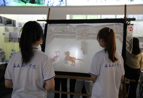随后,成员们在讲解员的带领下参观了馆中的皮影雕刻。馆中皮影包含古代人物、刀枪剑戟、山水庭堂、金銮茅舍、花草虫鱼等诸多形象,这些形象都展现出了雕刻艺人无与伦比的技艺与匠心独运的创造力。