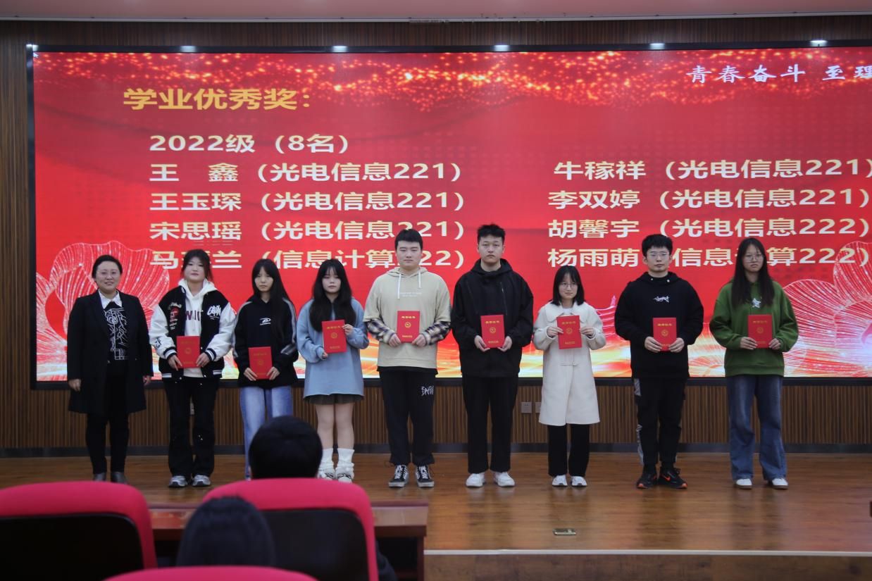 胡红亮,李扬,王向阳,张岩,曾妍依次为优秀班集体、五好学生标兵、五好学生、学业优秀奖、单科优胜奖、学业进步奖、社会实践优秀集体、劳动实践奖等获得者颁奖。随后优秀班集体(信息计算221张佳乐)、五好学生标兵(刘孔子)、活力文体队伍(羽毛球队王玉琛)、社会实践优秀先进个人(杜祎婷)分别作代表发言,表达了对学院培养的感激之情,分享了自己在学习,社会实践以及体育劳动方面的经验和心得,并表示自己将再接再厉,不断提高自我。
