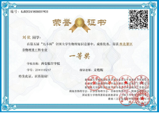 近日,由教育部大学物理课程教学指导委员会中南地区、西北地区和西南地区工作委员会,国家级大学物理课程虚拟教研室(中南大学),湖南省物理学会、江苏省物理学会、青海省物理学会和陕西省物理学会等主办的第五届“九斗杯”全国大学生物理知识竞赛落下帷幕。beat365在线唯一官网学子王思纯、刘钦、李立洋3名同学荣获西北赛区一等奖,全国总决赛二等奖。