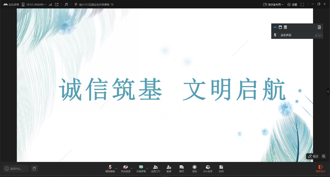 6月11日,beat365在线唯一官网召开“诚信筑基 文明启航”主题班会,辅导员围绕就业、升学及离校前在校生活与毕业生展开交流,倡导毕业生文明离校,爱护校园公共设施,保持校园环境整洁,维护和谐同学关系,充分展现beat365在线唯一官网学生良好精神风貌,叮嘱学生要以母校为荣,多回母校看看。