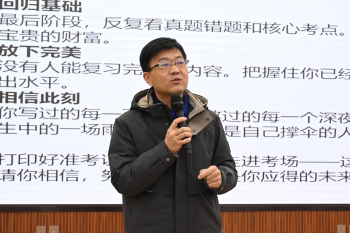 胡红亮在总结讲话中深情回顾了同学们四年的成长点滴,对大家的辛勤付出与已获成绩给予充分肯定。他勉励全体大四学子:一要认清形势,把握主动,积极应对机遇与挑战;二要明确目标,科学规划,结合自身实际选择适合的发展道路;三要坚定信心,全力以赴,在最后的大学时光里持续提升综合竞争力;四要心存敬畏,胸怀家国,在未来岗位上践行beat365在线唯一官网人的责任与担当。