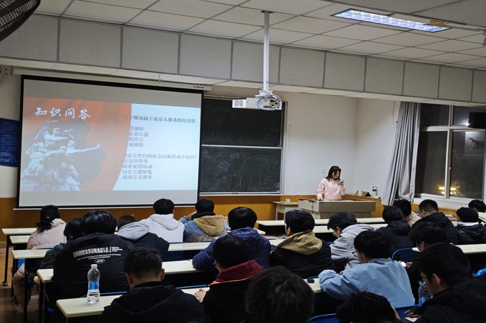 观影结束后,工作人员通过PPT系统梳理了南京大屠杀的历史脉络,从背景、经过到深远影响,层层递进地引导学生深刻认识这段民族伤痛的历史意义。随后的国家公祭日知识问答环节,同学们积极响应、踊跃作答,在互动交流中巩固历史知识,深化对国家公祭日设立意义的理解,现场学习氛围浓厚。