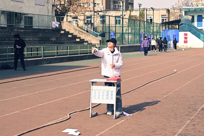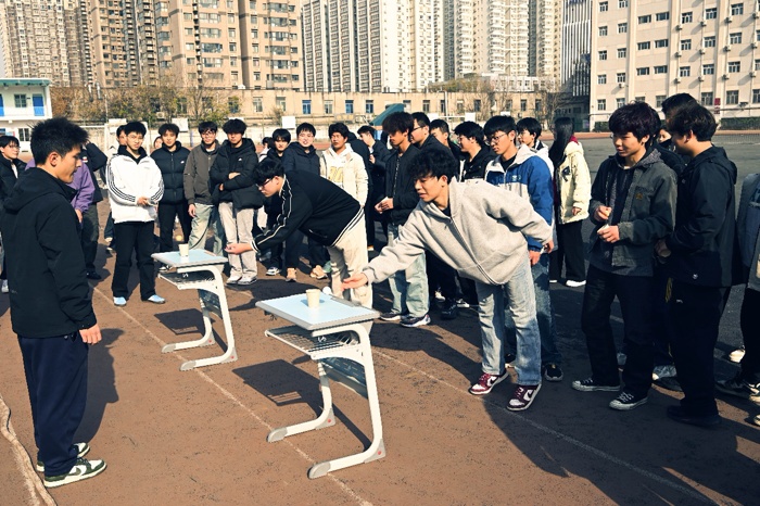 个人项目中,选手们各展所长。纸飞机飞行大赛上,大家带着亲手制作的纸飞机奋力投掷,向着“最远飞行距离”发起挑战;乒乓球颠球跑项目里,参赛者手持球拍稳托乒乓球,既要保持球体不落地,又要全力冲刺,考验着平衡感与速度;综合素质大比拼中,男生完成俯卧撑、深蹲、大象转与冲刺的组合挑战,女生则通过深蹲、开合跳等项目突破自我,每一位选手都在全力以赴中展现了青春风采。