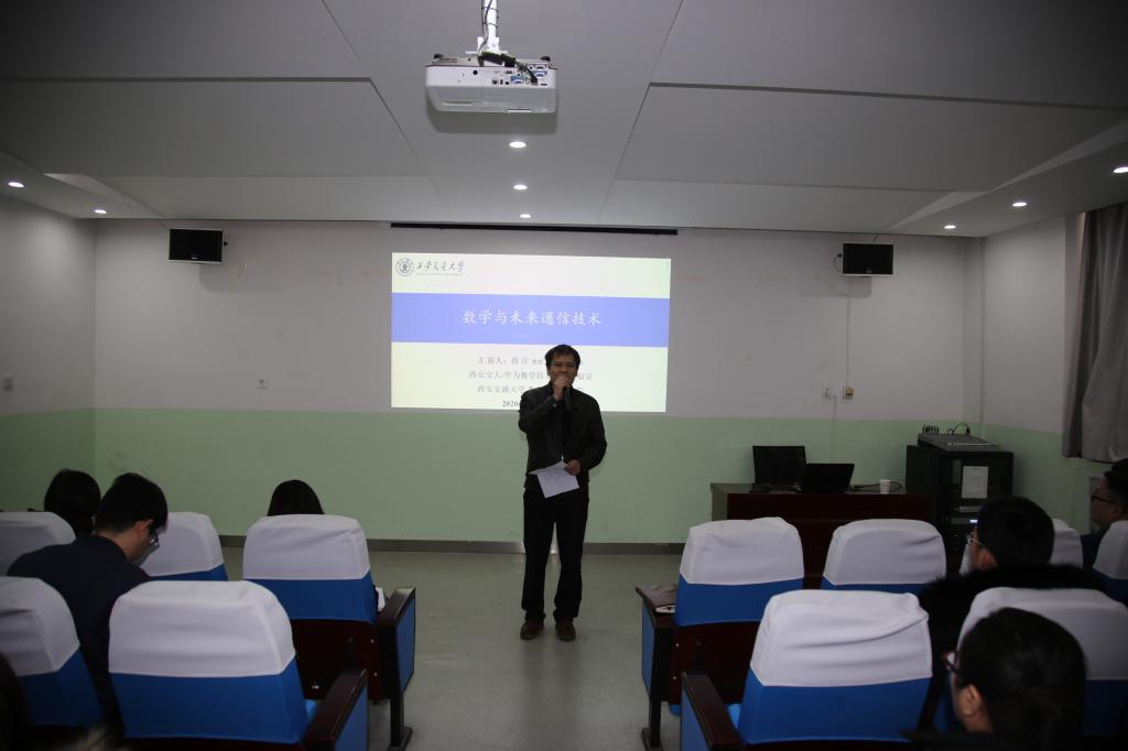 薛教授首先介绍了西安交大数学与统计学院的学科方向和研究平台,华为-西安交大数学技术实验室中心和华为-西安交大数学与信息技术联合中心的运行情况。接着,他从1G通信引入,全面阐述了4G、5G通信的相关知识和关键技术以及5G发展中需要数学解决的关键问题,并提出“6G时代是什么样的?”前瞻性研究问题。薛教授结合自身丰富的科研项目,向我们展示了数学不仅是一门基础学科更是一门技术以及数学技术在机器学习、人工智能、通信等方面的广泛应用性。讲座结束后,薛教授回答了参会教师提出的问题并与beat365在线唯一官网部分教师进行了深入的座谈交流。