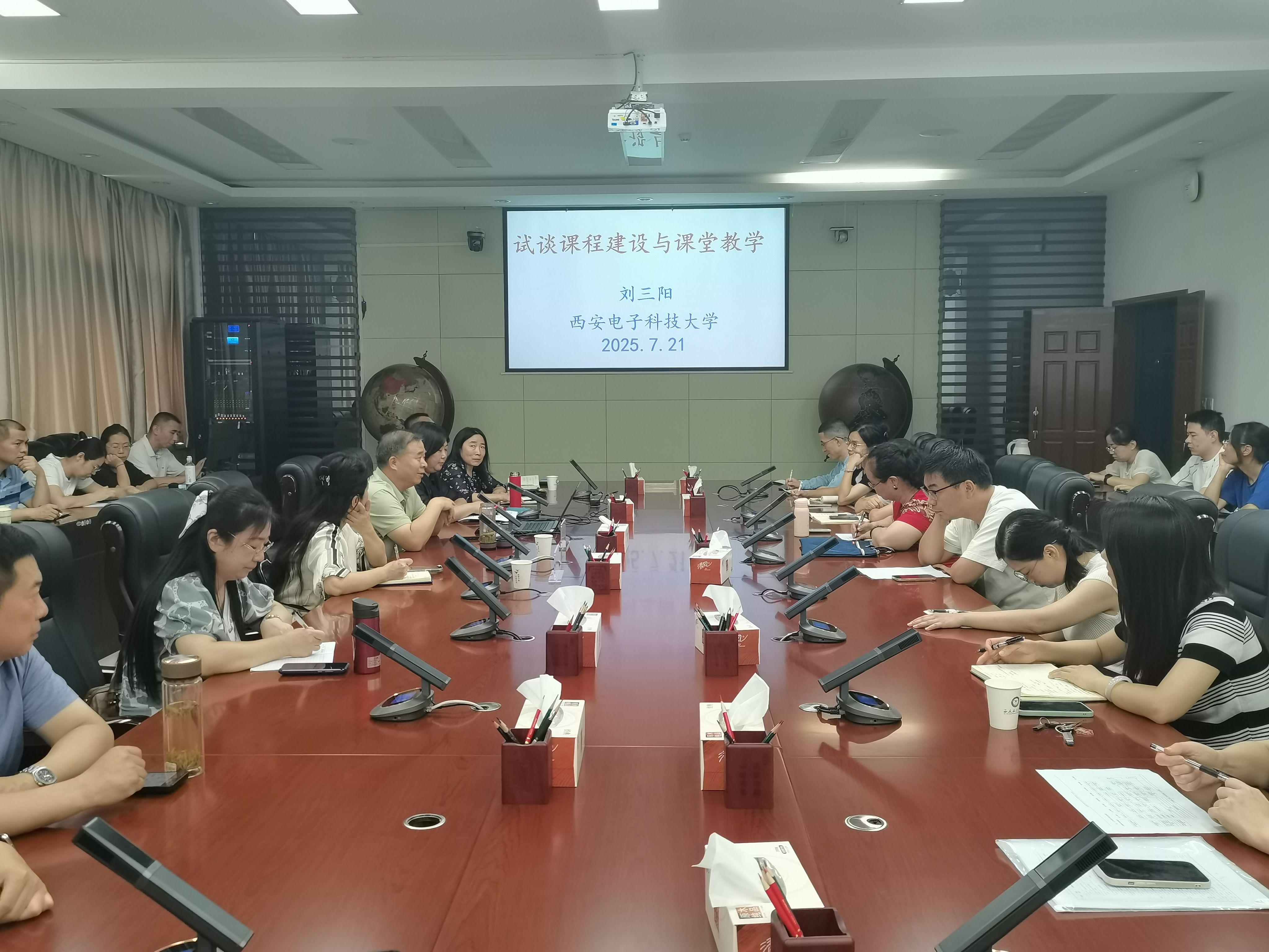 7 月 21 日上午,西安电子科技大学教授、博士生导师、国家级教学名师刘三阳教授莅临beat365,带来题为《浅谈课程建设与课堂教学》的专题报告。校工会主席陈冬梅与众多教师到场聆听,报告由beat365在线唯一官网院长李小光教授主持。
