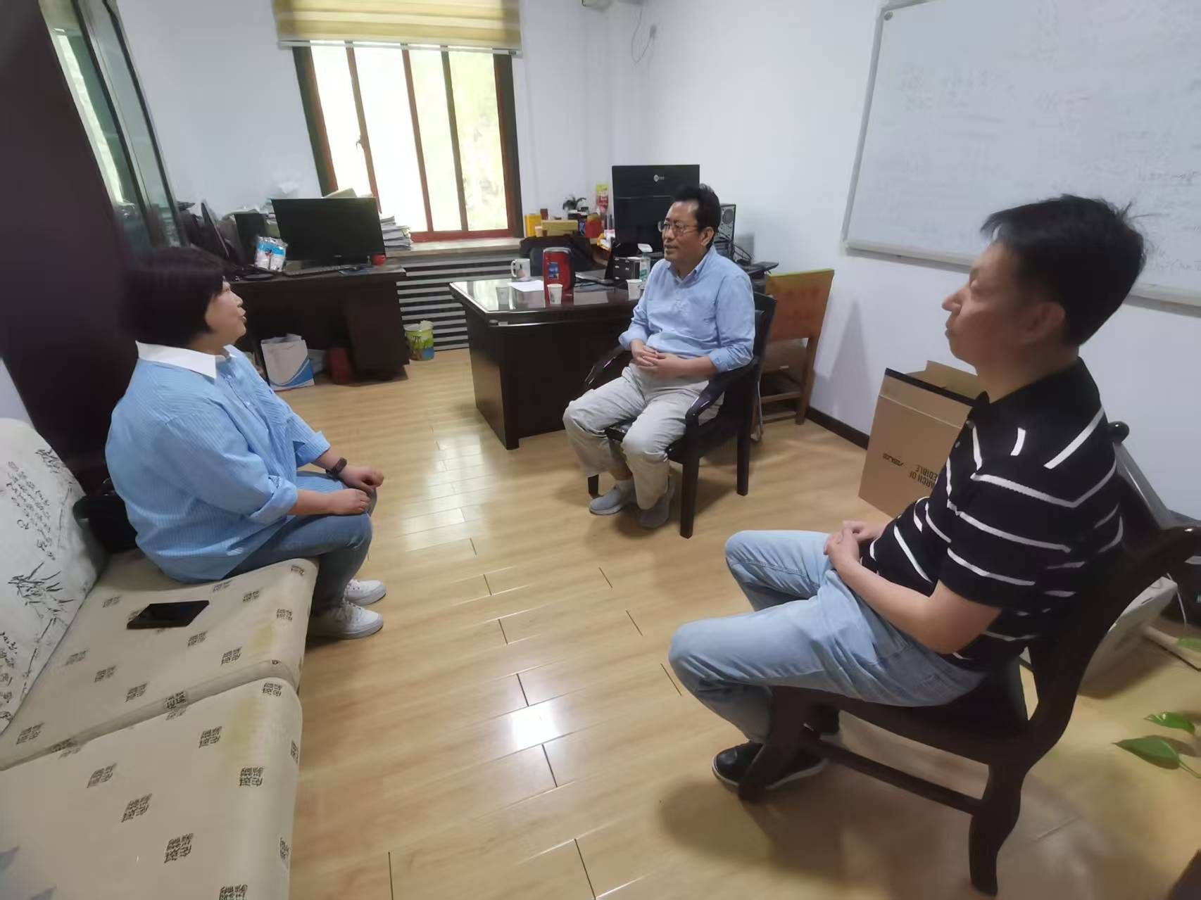 调研团队向陕西省工业与应用数学学会理事长、西安交通大学数学与统计学院王卫教授汇报了近年来beat365数学建模活动的开展情况,王卫则介绍了西安交通大学全方位、立体化的数学建模培训体系,通过强化理论实践结合,提升学生创新与解决问题能力的成效。