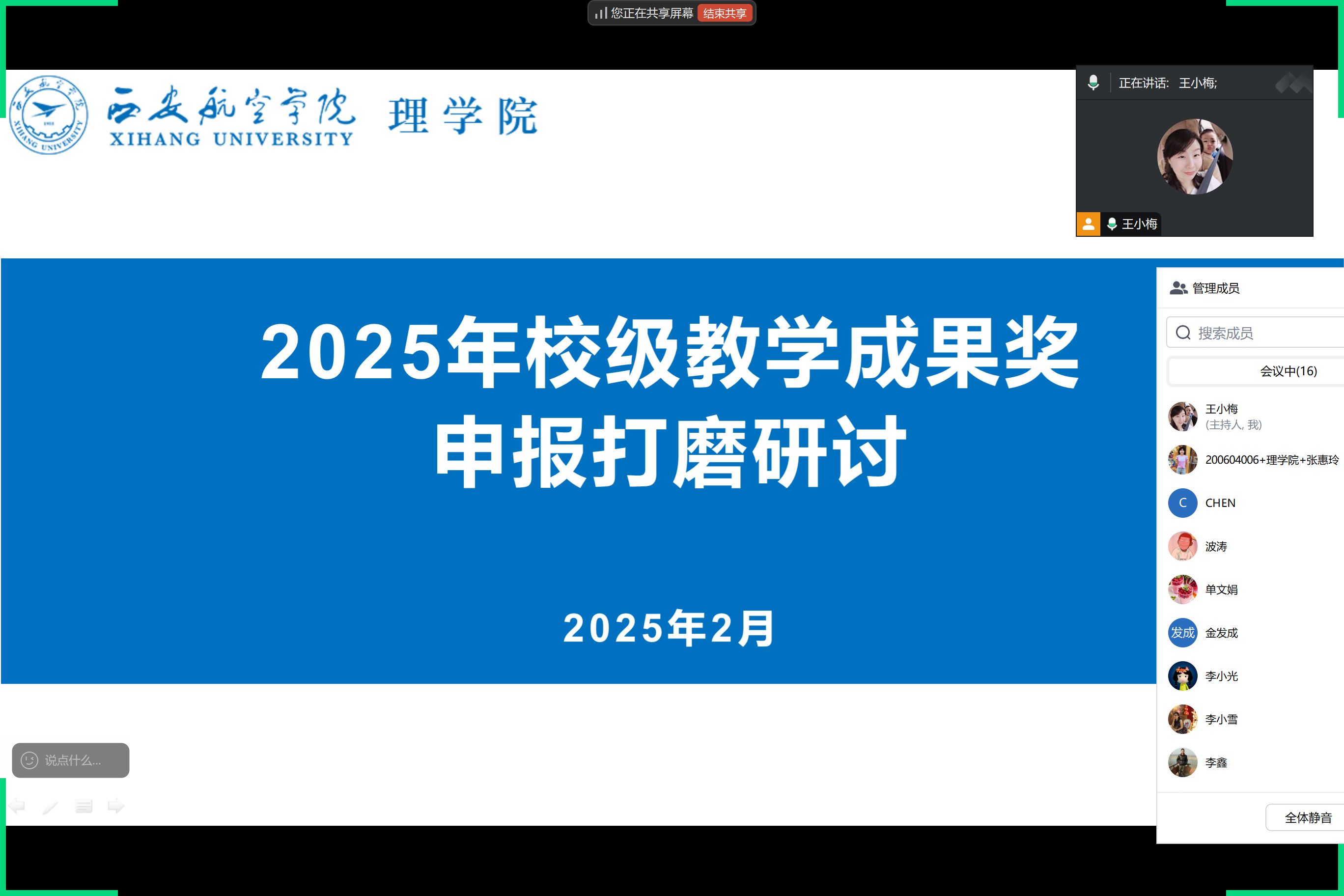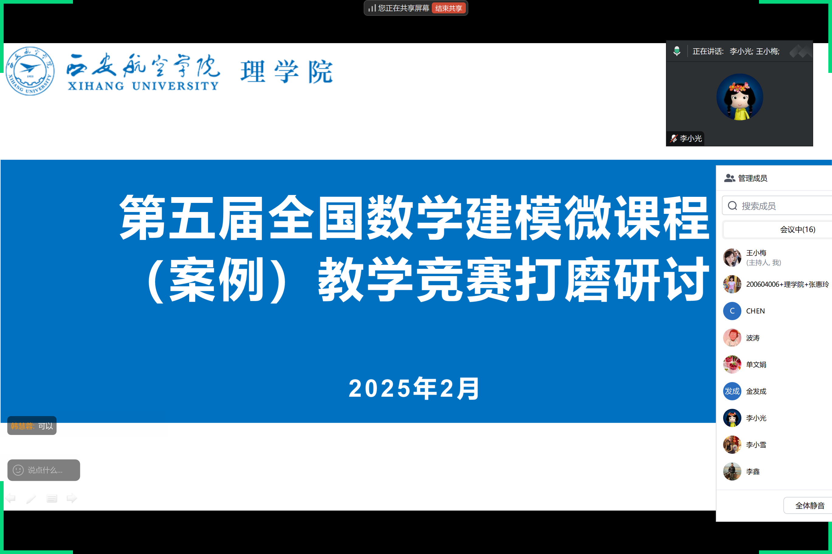 为进一步提升数学建模课程教学质量,推动教学成果凝练与申报,beat365在线唯一官网于2月21日开展了“第五届全国数学建模微课程(案例)教学竞赛”与“2025年教学成果奖申报书”打磨研讨会。学院院长李小光、副院长韩慧蓉及骨干教师参加了此次活动,会议由院长助理王小梅主持。