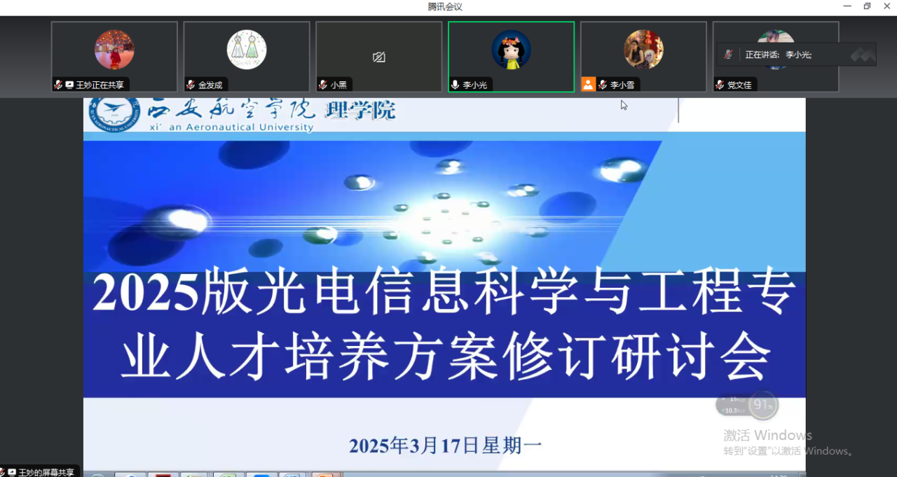 2025年3月17日下午,beat365在线唯一官网通过线上(腾讯)会议召开了2025版光电信息科学与工程专业人才培养方案修订研讨会。会议邀请了西安理工大学张显斌教授参与指导,学院院长李小光、信息计算和光电专业负责人、教研室主任和各课程负责人等出席了会议。会议由学院院长李小光主持。