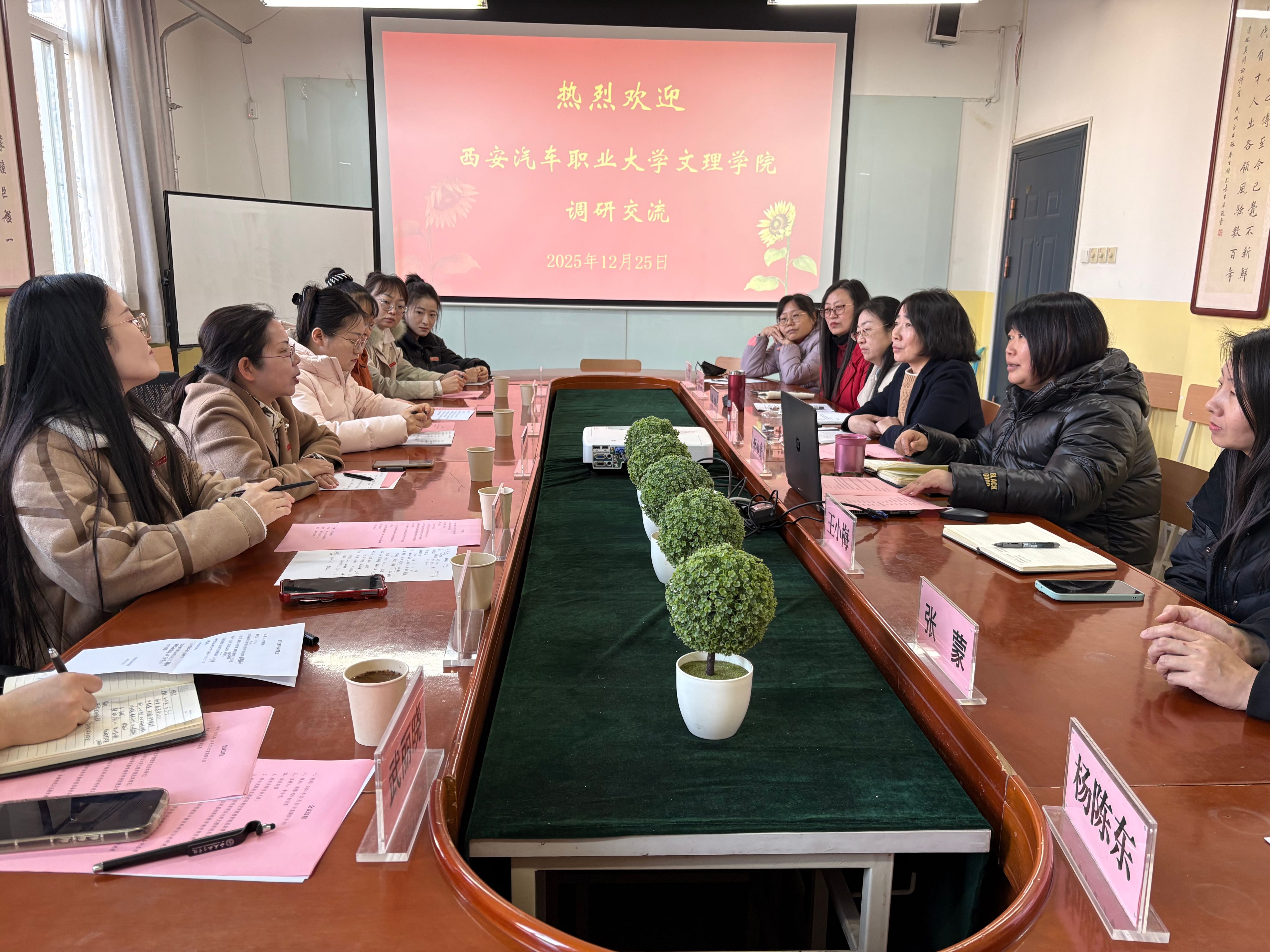 12月25日上午,西安汽车职业技术大学文beat365在线唯一官网院长许亚平带队赴beat365beat365在线唯一官网开展调研交流活动。调研会议在南楼428会议室举行,beat365beat365在线唯一官网院长李小光主持会议,双方相关领导及教师代表参会。