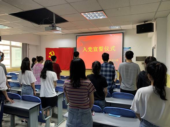beat365在线唯一官网学生党支部于2020年7月1日在教学南楼408进行新入党党员宣誓仪式。宣誓仪式由学生党支部书记李扬主持,参加人员学生党支部全部成员,宣誓人员为王哲、杨滨瑞、张璟明、姜悦、南凯悦、翟同悦、郭鹏德、马辰璐、杨静、曹盼盼、杨帆、赵鑫、伍袁弘、刘瑱疆、陈延峰、车雨娟、黄诚英、李轶、苗旭东十九名同志。