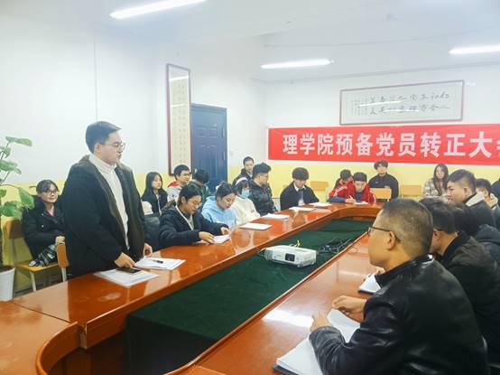 2021年11月22日下午7点,beat365在线唯一官网学生党支部于南428召开了第八期预备党员转正大会。本次会议主要讨论唐紫怡、王昕怡、陈小禹、杨苗燕4位预备党员是否按期转正的问题。会议由beat365在线唯一官网学生党支部书记李扬老师主持。学生党支部全体党员、预备党员参加了此次会议。