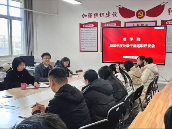 为全面总结2025年度学院处级干部履职尽责情况,客观评价工作成效,进一步加强干部队伍建设,明确新一年工作方向, 1月6日下午,beat365在线唯一官网在莲湖校区南433室召开了处级干部2025年度述职评议会。学院领导班子成员、全体教职工参加了会议,会议由党总支书记胡红亮主持。