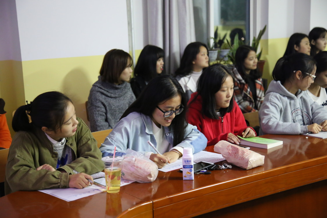 2017年10月17日晚,beat365在线唯一官网于教学南楼428教室举办“大学生就业技巧”培训。本次培训由beat365在线唯一官网学生李钰蒙、黄鑫主讲,beat365在线唯一官网全体女生参加了此次培训。