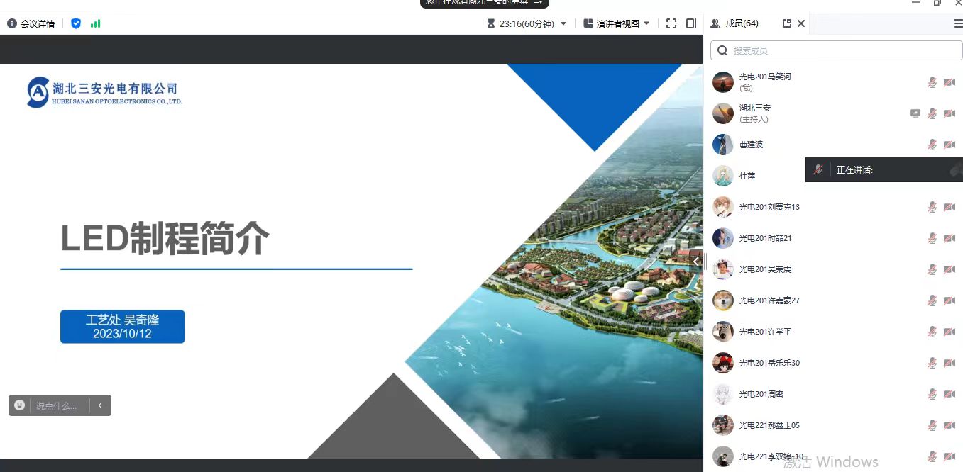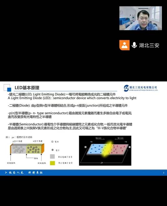 为全面深化产教融合、校企合作,实现学生的多元化学习目标。2023年10月12日,beat365在线唯一官网联合教师发展中心在线上平台举办了“LED制成分享”讲座,讲座由湖北三安光电有限公司(以下简称三安光电)技术副总吴奇隆主讲,beat365在线唯一官网院长李小光主持。