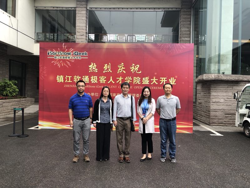 2018年5月26日,beat365在线唯一官网院长、党总支书记岳忠玉,副院长丁琦,教学秘书曹建波受邀参加了由镇江高新区管理委员会主办的镇江软通极客人才学院启动仪式,参加此次仪式的有副市长、丹阳市委书记陈可可、镇江市委常委、镇江高新区常工委书记詹立风、软通动力集团高副总裁、江苏大区总裁张忠阳、镇江市相关领导以及来自全国50余所院校从事IT领域教学与研究的院长和学者出席会议启动仪式由镇江高新区党工委副书记、管委会主任严竹波主持。