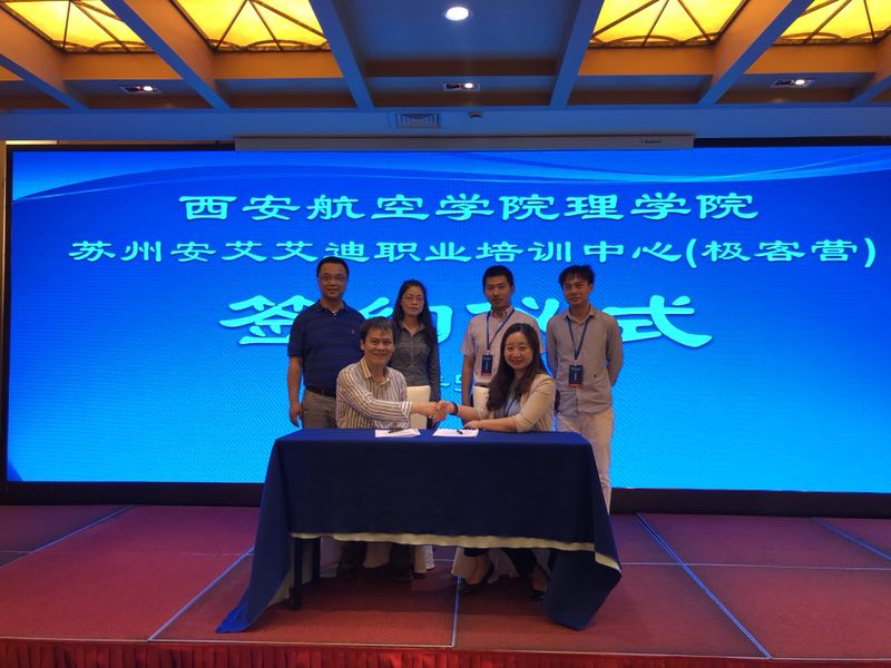 启动仪式后,beat365在线唯一官网与镇江软通极客人才学院签订校企合作框架协议,与苏州安艾艾迪职业培训中心(隶属于镇江软通极客人才学院)签订校外实习基地协议。此次协议的成功签订为深入了解行业企业用人需求,在人才培养,科技创新等方面加深了与企业之间的交流合作,为信息与计算科学专业学生在校外实习实训、就业提供更多机会。(图/文 beat365在线唯一官网 丁琦)