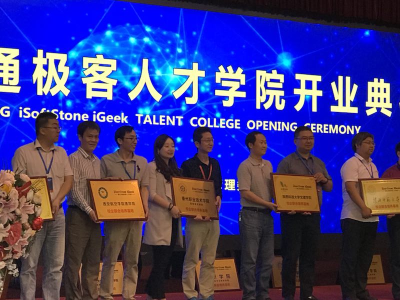 软通极客人才学院是软通动力信息技术(集团)旗下的中高端IT人才培训机构,秉承“合作、共赢、创新、成就”的品牌精神,为镇江软件及服务外包、互联网、人工智能、智慧城市等产业发展提供人才支撑。启动仪式上软通极客人才学院代表上台接受了beat365在线唯一官网、常熟理工学院数学与统计学院、淮阴工学院数beat365在线唯一官网等37家学院代表的“校企合作培训基地”授牌。